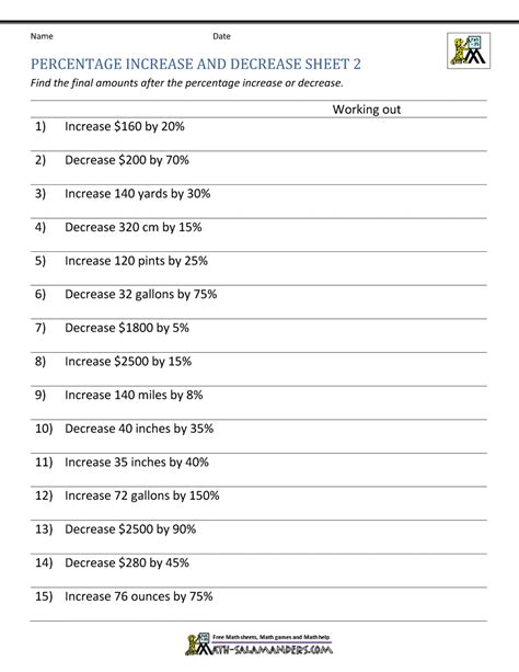 Percentage Increase And Decrease Worksheets With Answers