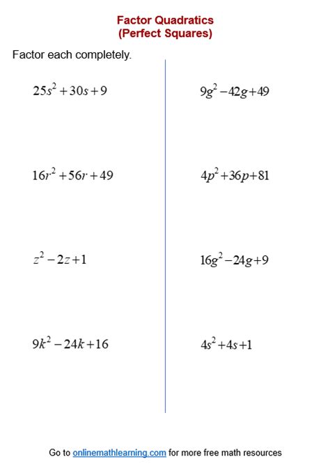 Web Perfect Squares Worksheet Perfect Squares Worksheet Multiple Choice Id: