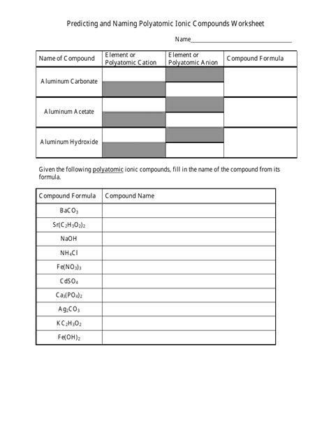 (metal/nonmetal) naming ionics with polyatomic ions. Web predicting and naming polyatomic ionic compounds worksheet name you are required to know numbers of atoms and charge on the following polyatomic ions: Web this printable was uploaded at march 05, 2023 by tamble in ionic.